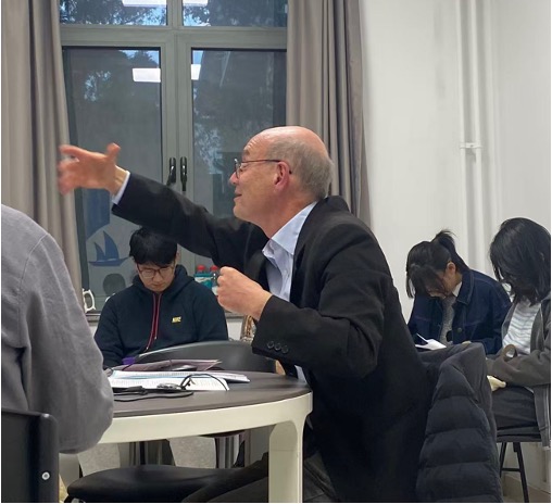 整场讲座,Eric Benoit教授通过慷慨激昂的诗歌朗诵和深入浅出的讲解令现场师生由衷仰慕,陶醉其中。讲座尾声,现场师生围绕雨果诗行中的停顿问题、诗歌与音乐中法语词尾e的发音规则、法国学生经典诗歌学习情况等学术问题与Eric Benoit教授展开深入探讨。针对法语学习,Eric Benoit教授提出建议:聆听发音标准的法语歌曲,也是感知法语语音,提升法语水平的有效方式之一。